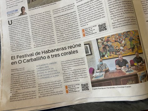 O pasado día dezanove de xullo o presidente, Roxelio e o director do Orfeón fixeron na casa do concello do Carballiño presentaron o festival de Habaneras que terá lugar no auditorio do Carballiño o día seis da agosto, ás vinte trinta horas.